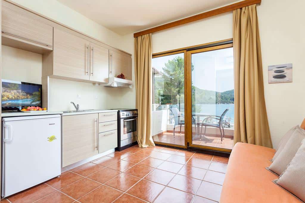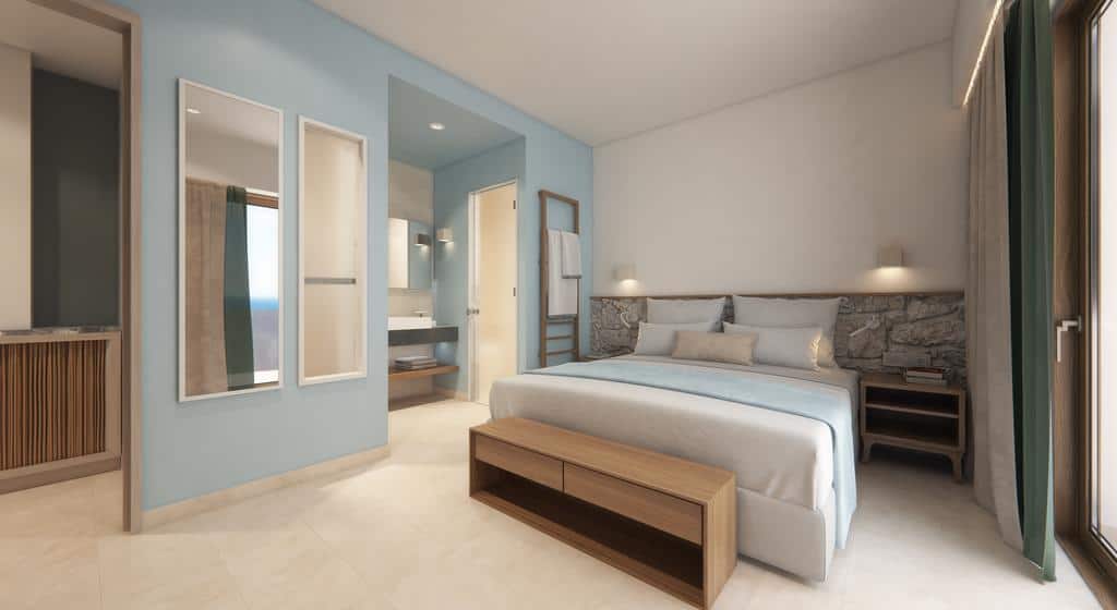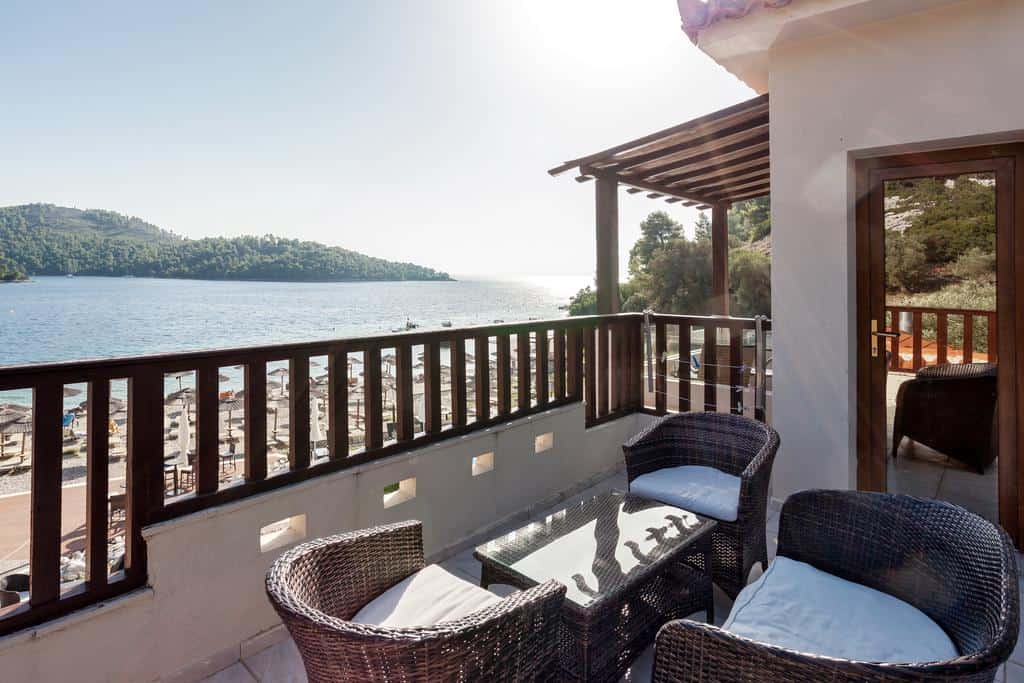 Furthermore, the Hotel has a restaurant and a swimming pool, while all units overlook the Aegean Sea and the pool. The Blue-Green Bay’s suites and rooms come with air conditioning. Additionally, they include a mini-fridge, an LCD cable TV, and a hairdryer, and some have a kitchenette.
