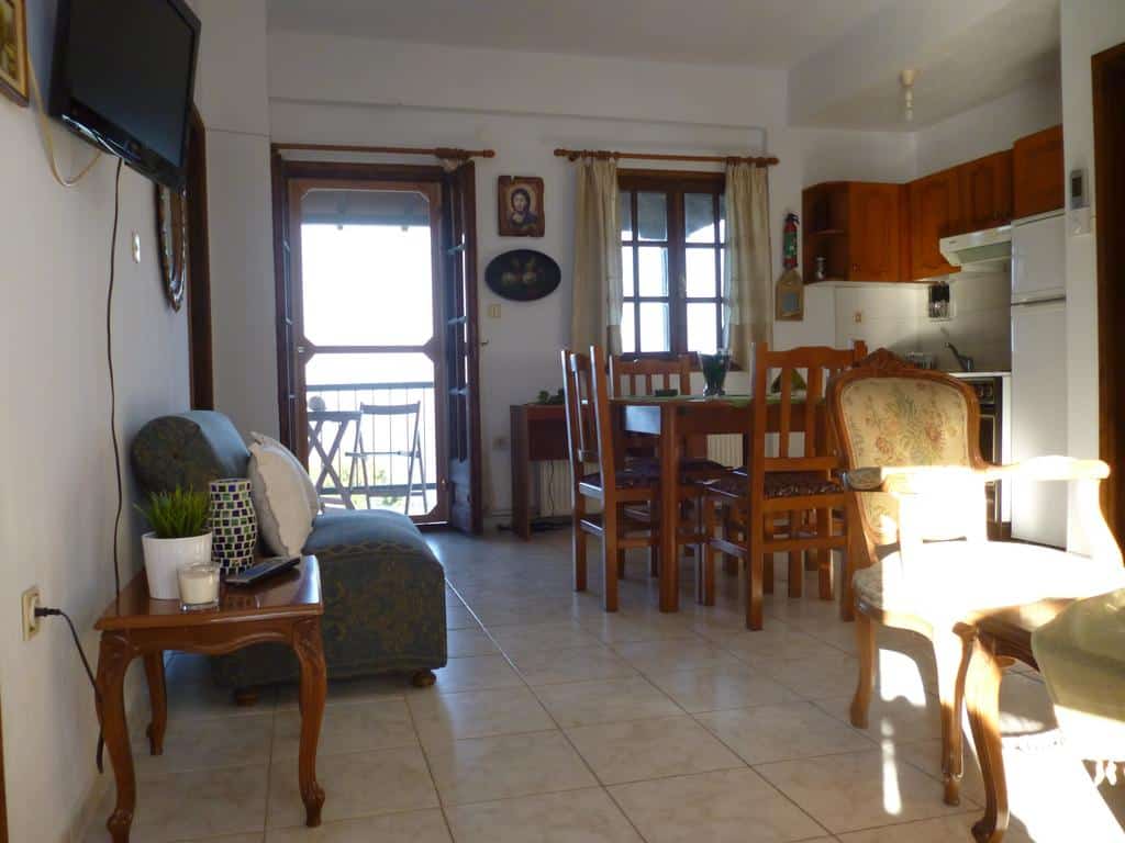 Furthermore, the unit offers self-catered studios and apartments which overlook the Aegean Sea. Free Wi-Fi is also available in all areas. The accommodation features a private balcony or terrace. Additionally, all studios come with a TV, a normal / kitchenette, a dining table, and screens. The private bathroom has a bath or shower.