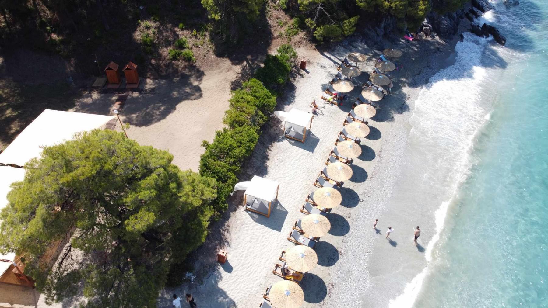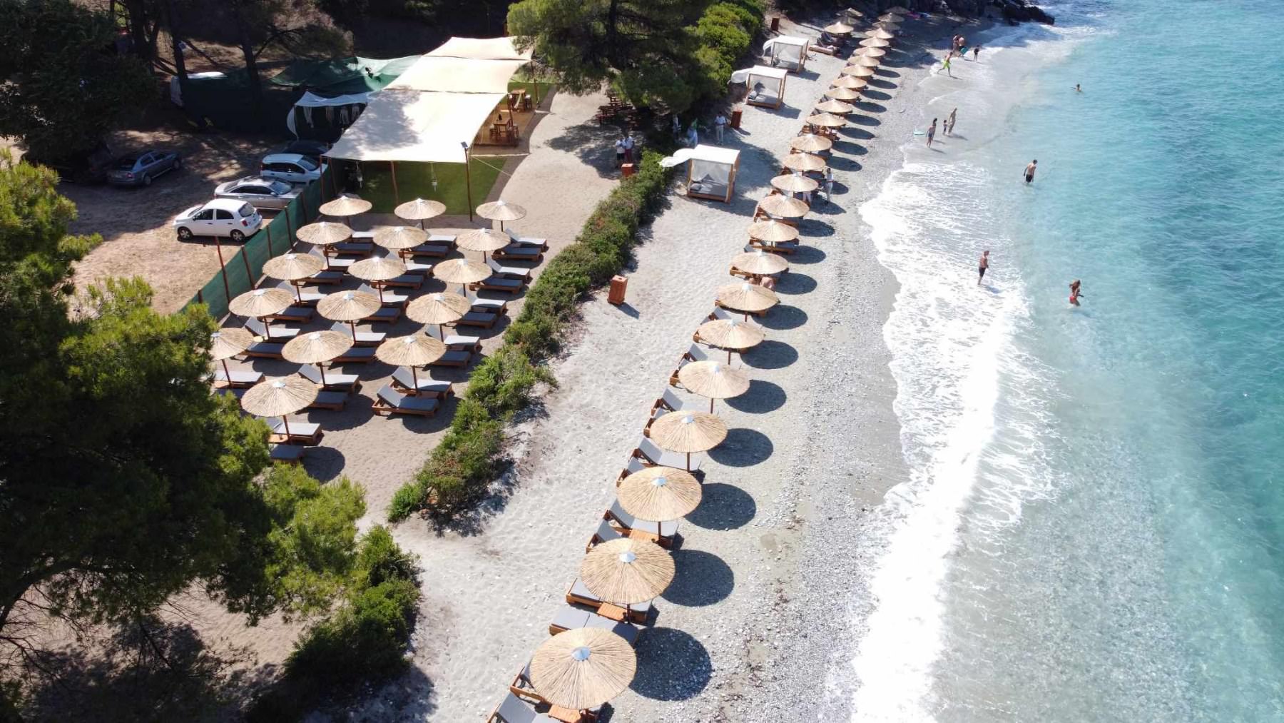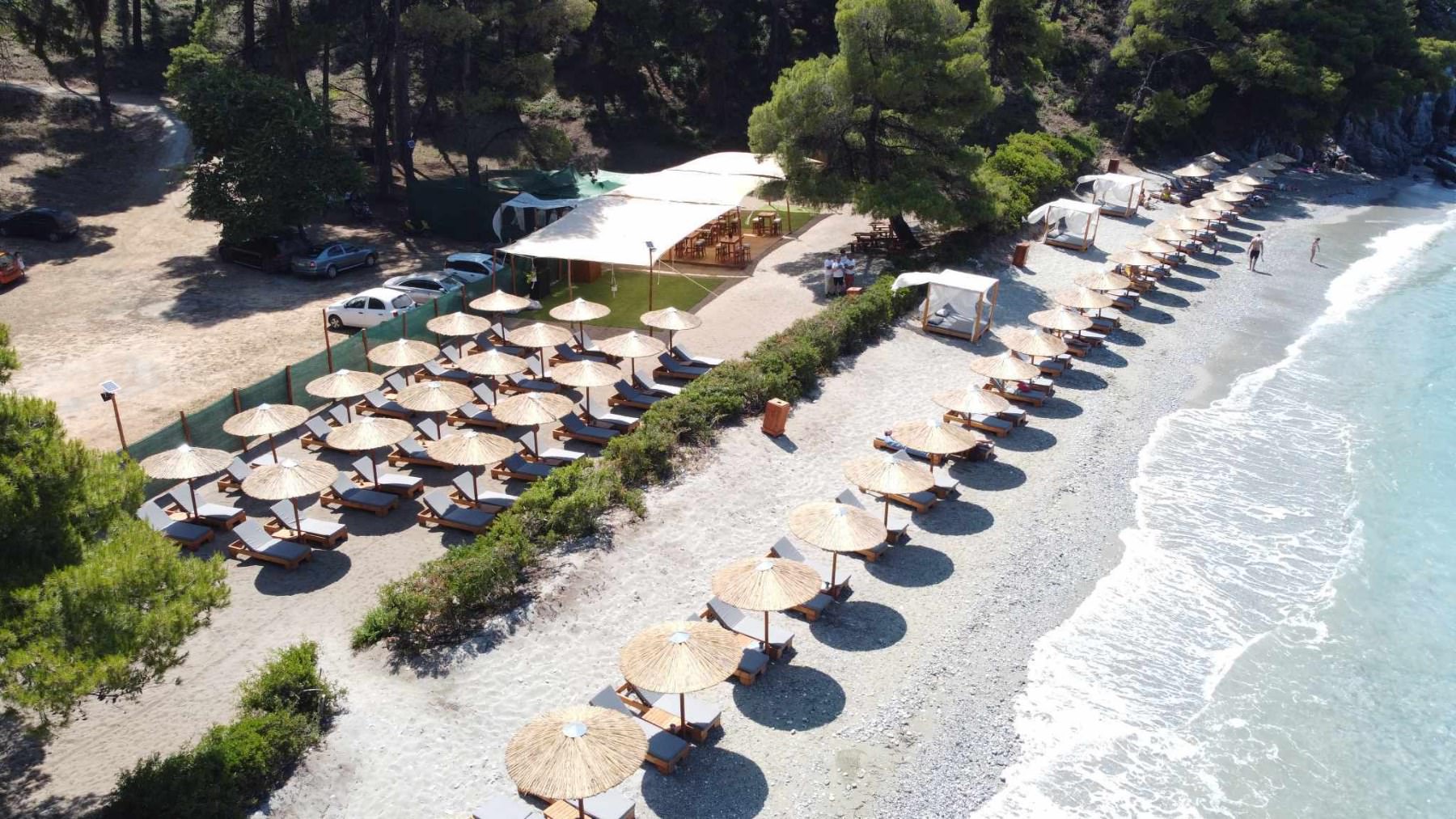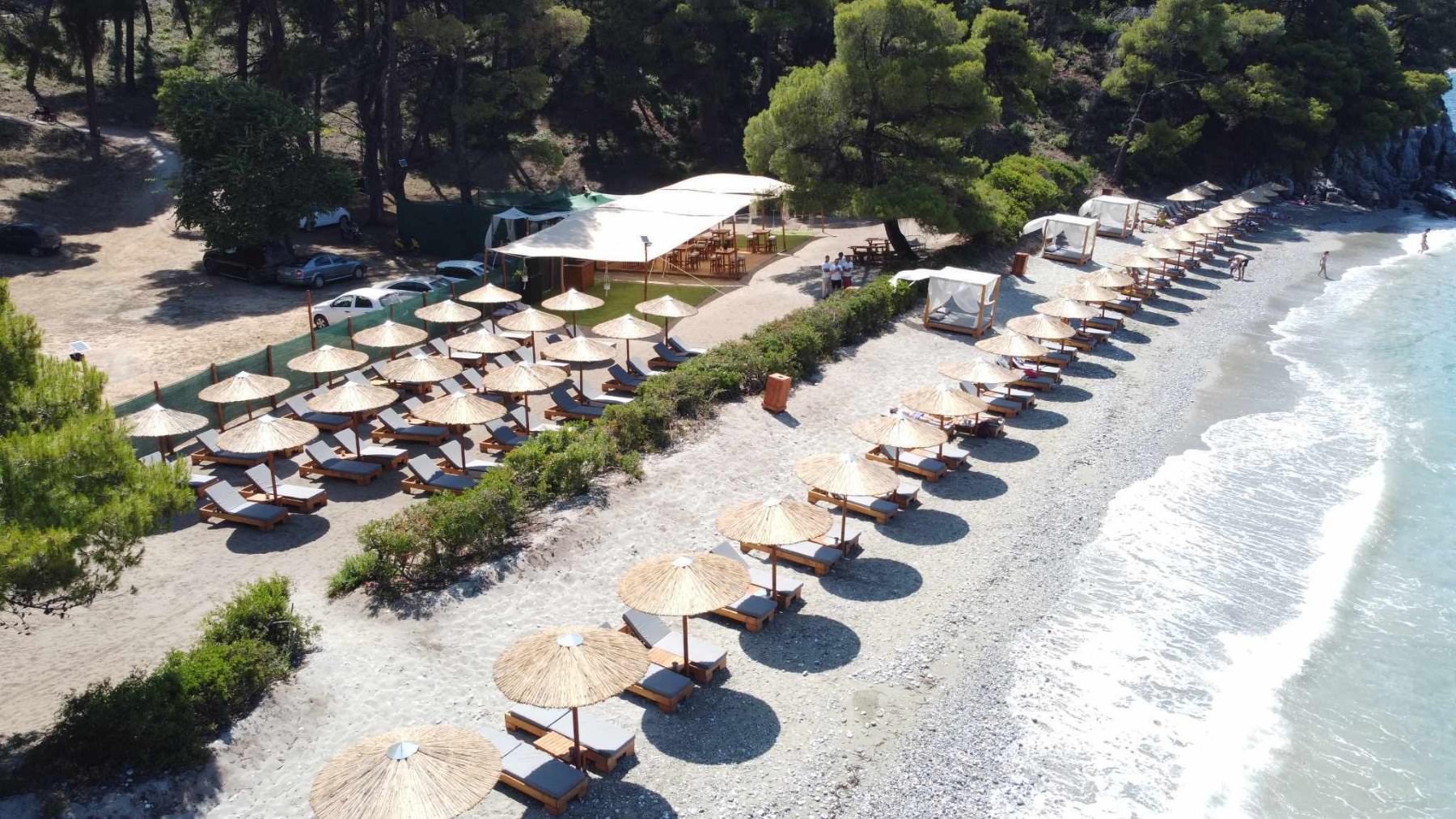Ftelia Beach bar is between Kastani and Hovolo Beaches in Skopelos. The specific beach bar is a new hot spot for the summer of 2023. Ftelia Beach Bar is the perfect summer spot to combine fun and relaxation.