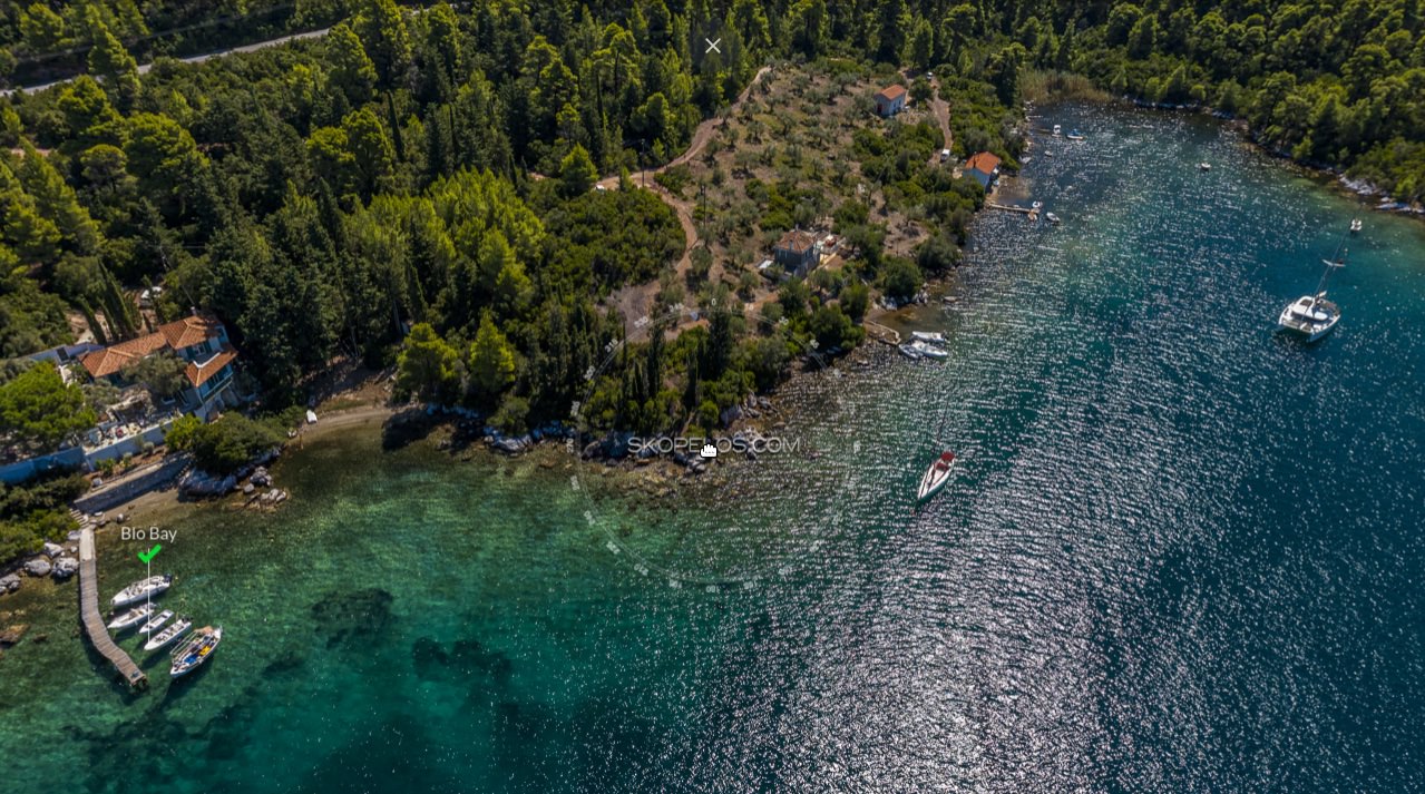Skopelos Blo is a great shelter for sailors and yacht boats. It is protected by the winds. Swimming at Blo feels like swimming in a lake.