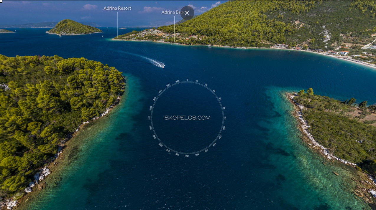Blo Bay, next to Panormos Beach, is approximately 13 kilometers away from Skopelos Chora. By car is more or less around 20 minutes. On the other hand, from Glossa Village, the distance is 14 kilometers.