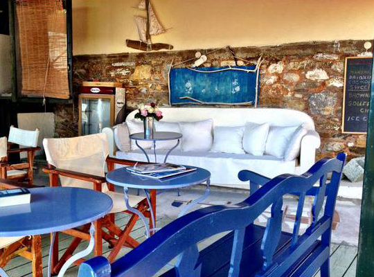 Big Blue Cafe has a classic summer design offering coffees, cocktails, refreshments, and delicious light meals on Skopelos Island.