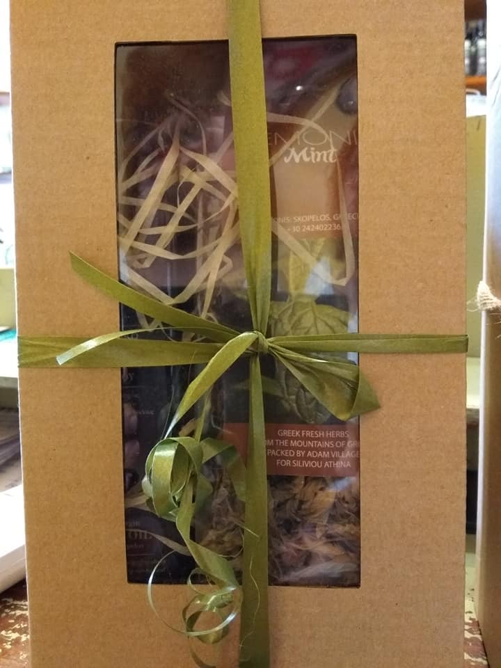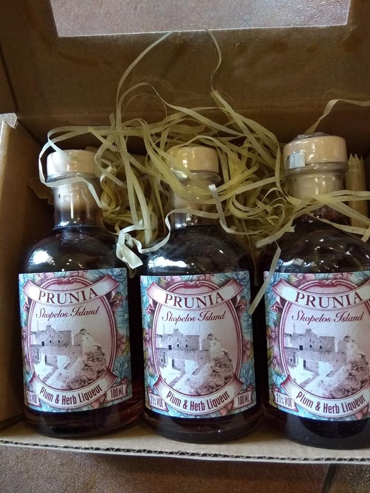 Στο κατάστημα υπάρχουν πολλά παραδοσιακά τοπικά προϊόντα που όλοι οι επισκέπτες του νησιού της Σκοπέλου πρέπει να πάρουν. Μια ποικιλία εξαιρετικών αποξηραμένων βοτάνων, πολλές εκδοχές του γνωστού δαμάσκηνου της Σκοπέλου, όπως το γλυκό αβγάτο, η Προύνια (λικέρ δαμάσκηνο και βότανα), δαμάσκηνα καλυμμένα με σοκολάτα κ.ά.