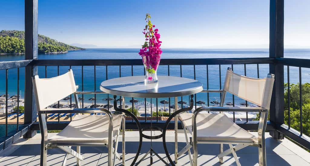 Τα δωμάτια του ξενοδοχείου είναι όλα κλιματιζόμενα και έχουν μπαλκόνι με θέα στην θάλασσα.