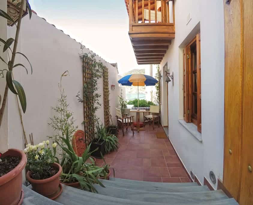 Διαθέτει μια ιδιωτική όμορφη αυλή και μπαλκόνι με μαγευτική θέα στην θάλασσα αλλά και στην πόλη.