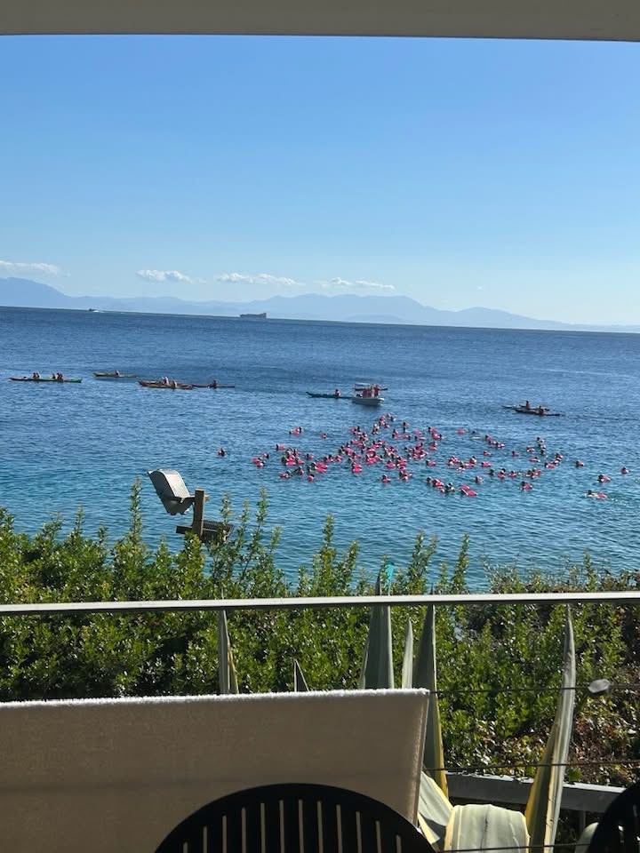 UltraSwim 33.3 Greece is more than a race – it is a community. Swimmers aged 14 to 74, from solo travelers to groups and families, come together for an unforgettable adventure. For non-swimming companions, the F3 Friends, Family, Fans program includes hotel, transfers, and activities so everyone can enjoy the island.