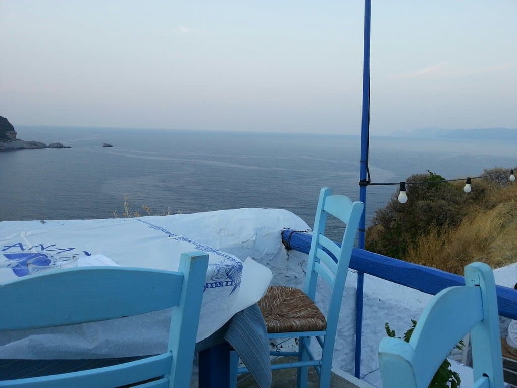 There are two ways to go to Anatoli Ouzeri in Skopelos’ Kastro. One is by car from the ring road.Β The other way is to climb the stairs and enjoy a magical journey either from the Panagitsa of Pyrgos or from the picturesque alleys of Chora.