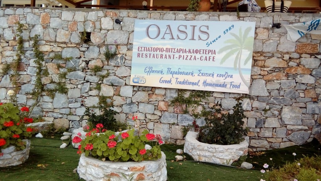 Moreover, Oasis Restaurant, in Neo Klima, on Skopelos Island, operates from morning till night. In the morning, you can enjoy your coffee or a cool refreshment, while at lunchtime, you can enjoy cooked meals and fresh fish. In the afternoon, at the Oasis Restaurant, you can get a delicious dessert or a summer drink. Still, you can try out the wide variety of wines (organic wines are also available). Finally, in the evening, you can end your day with a delicious dinner.